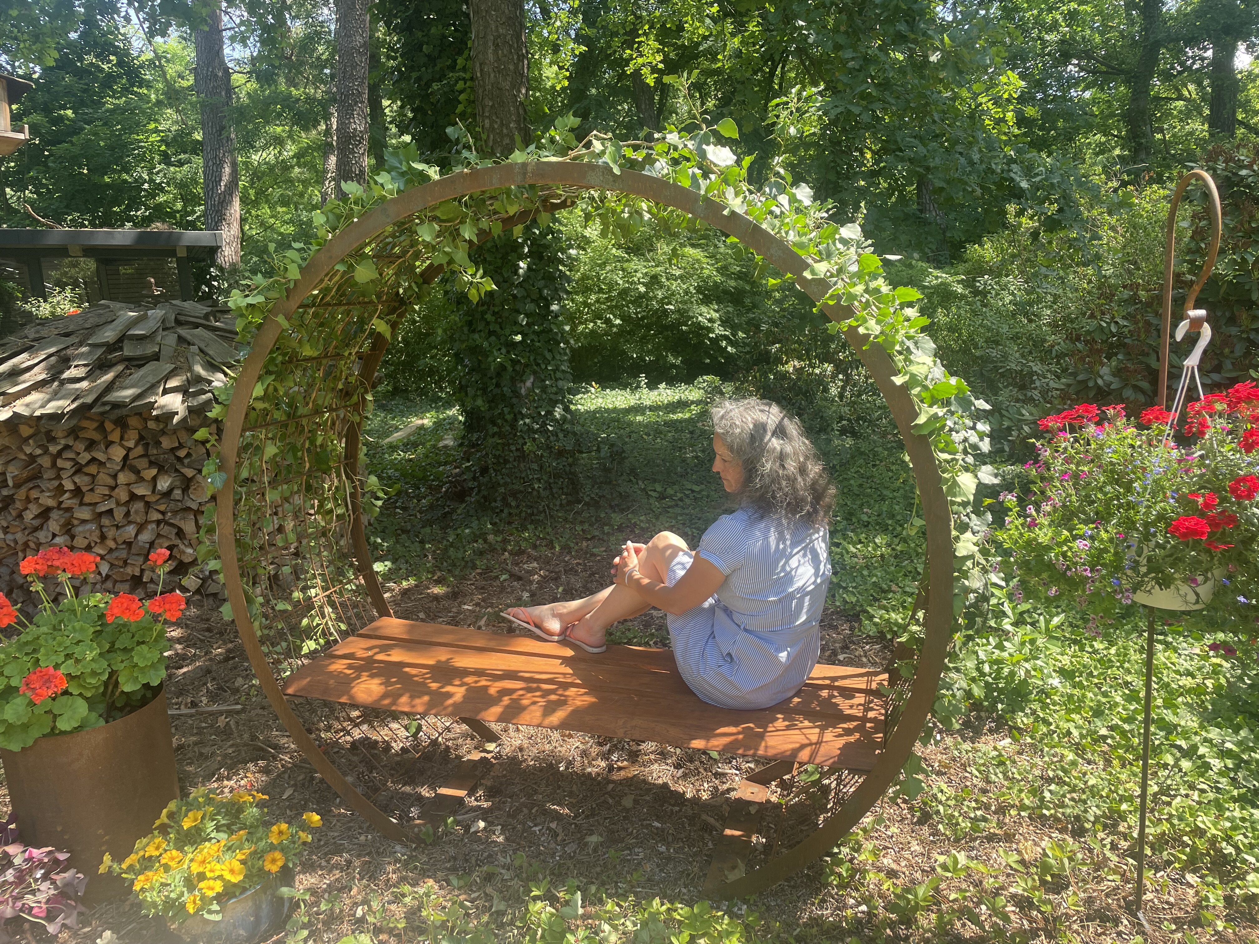 Mondtor zum Beranken mit Sitzmöglichkeit aus Cortenstahl – Ein exklusiver Blickfang für Ihren Garten